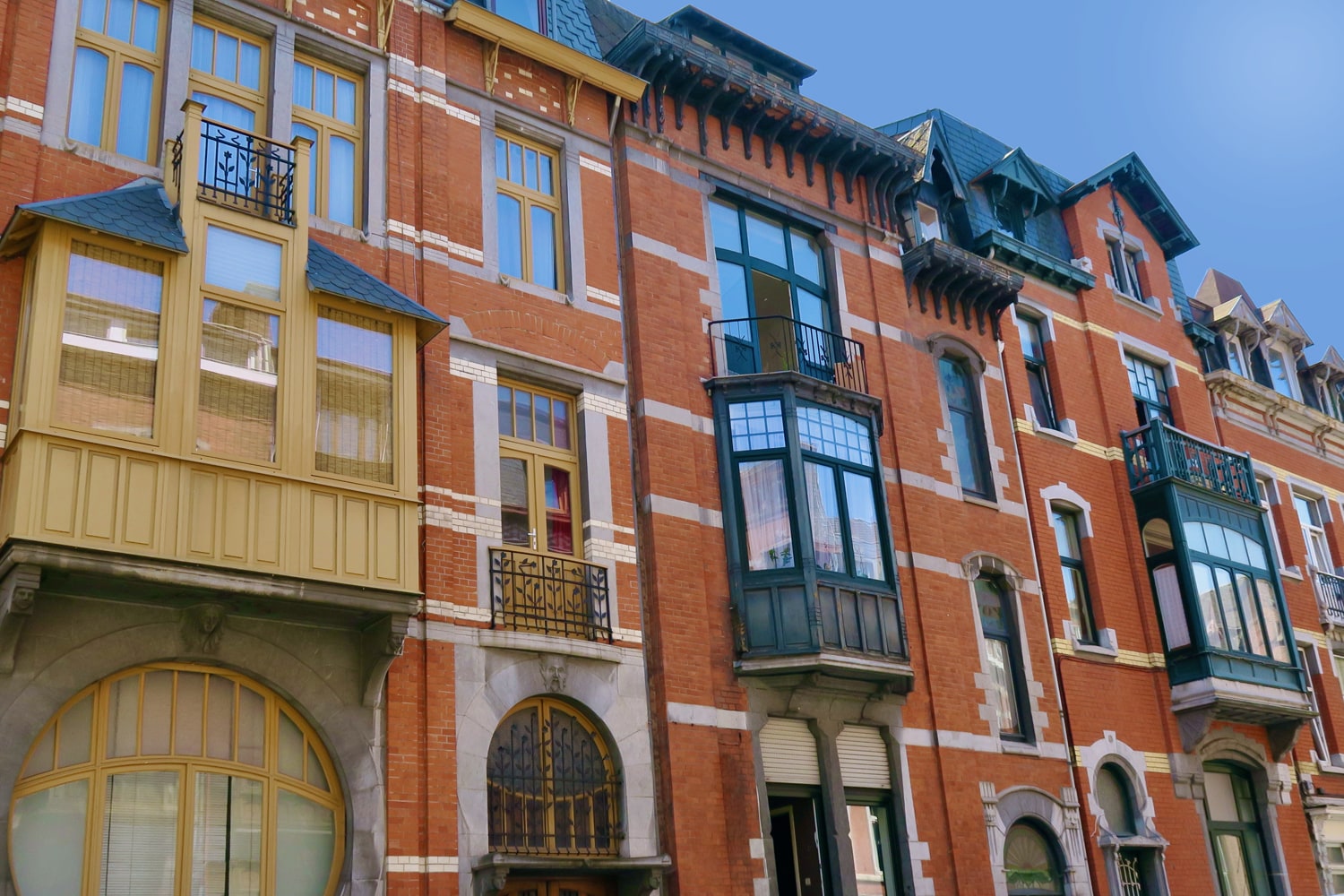 Série de neuf maisons de style Art Nouveau Liégeois, du n° 11 au n° 21, conçues par l’architecte Joseph Nusbaum au début du 20è siècle (dates incertaines).